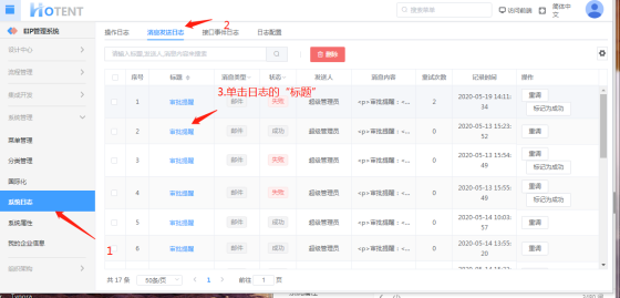 第一步:【系统管理】→【系统日志】→【消息发送日志】;