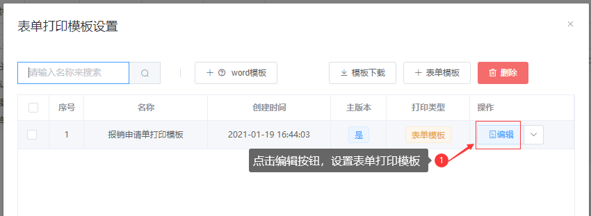 ③ 点击操作列的“编辑”按钮,设置表单的打印模板