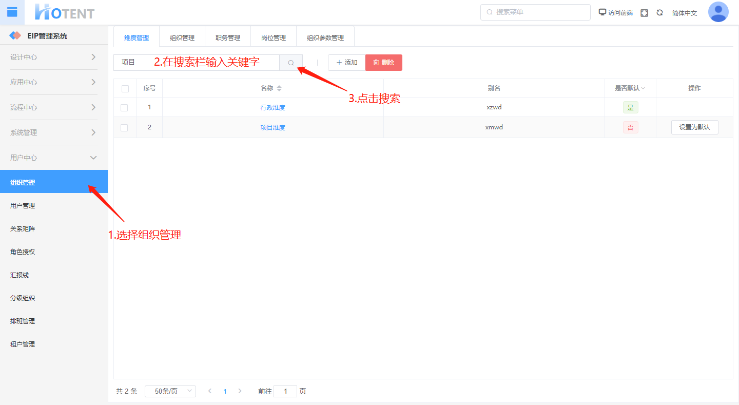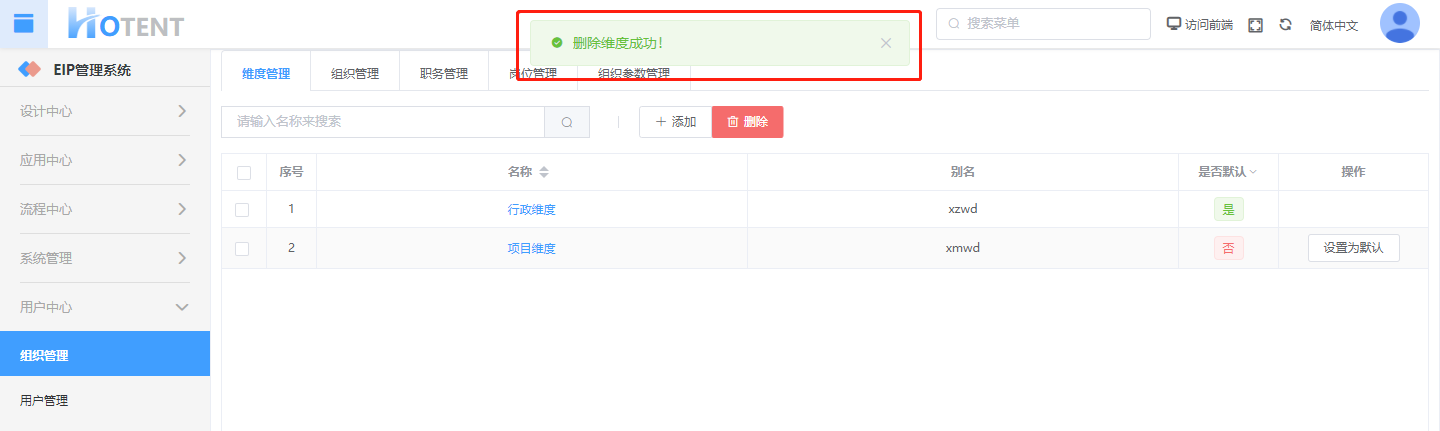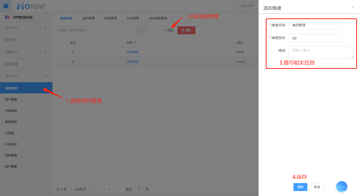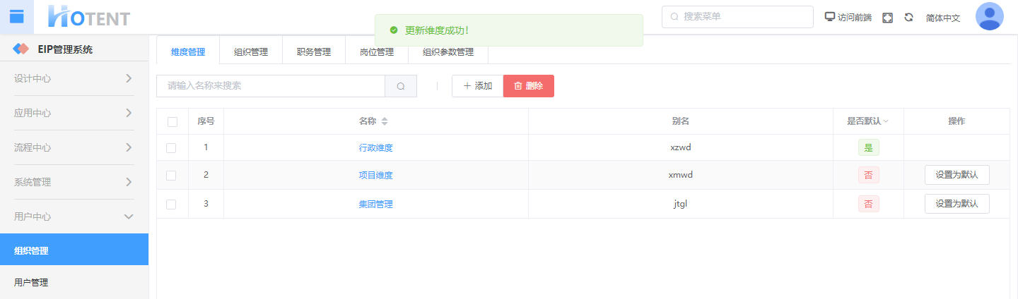 第一步:用户中心】→【组织管理】→【维度管理】