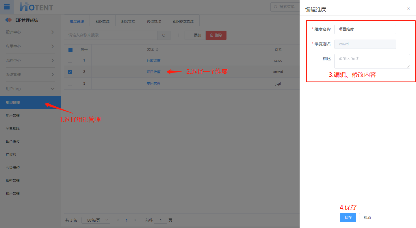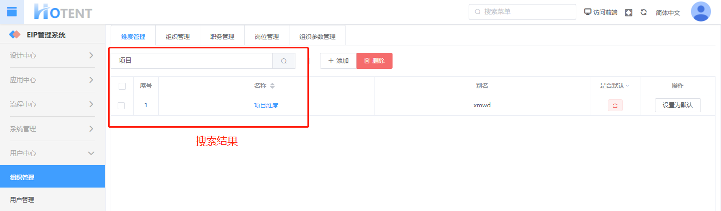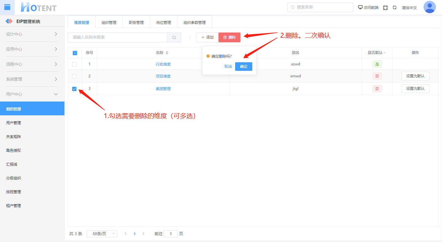 第一步:用户中心】→【组织管理】→【维度管理】