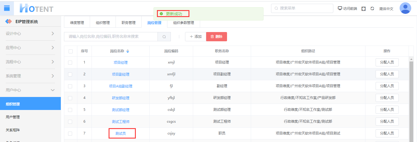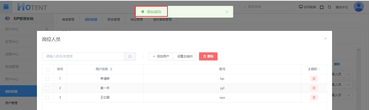 注:通过此操作添加的岗位人员,会同步在【组织管理】→【岗位管理】对应的岗位中