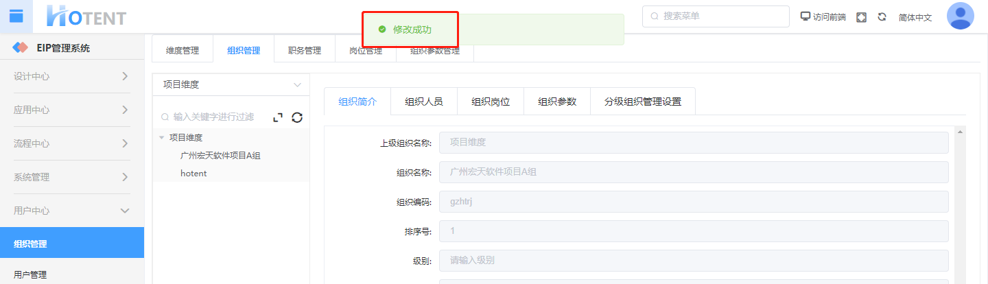 描述:系统中用户可属于多个组织,将组织设为用户的主组织可实现门户个性化显示、系统资源授权、流程审批人员获取等。
