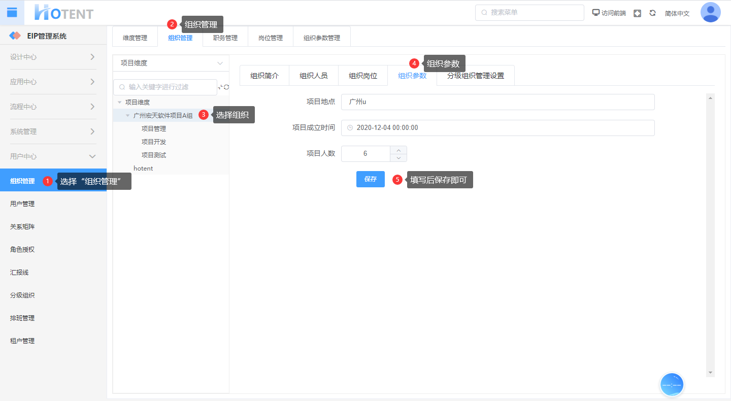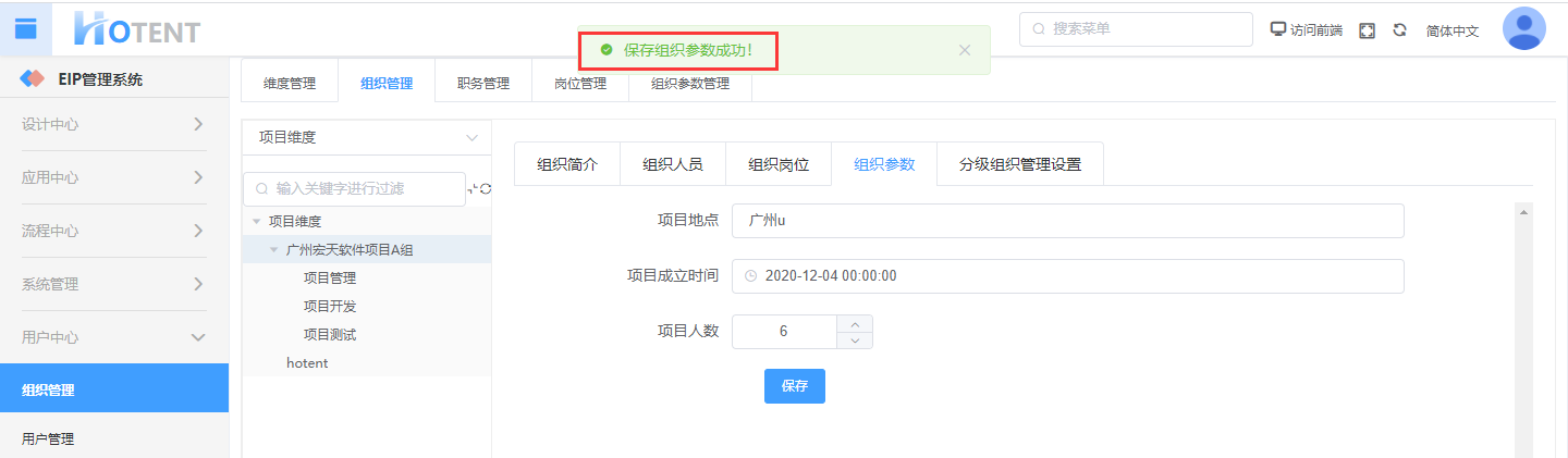操作:【用户中心】→【组织管理】→【组织管理】→点击组织名称→点击“组织参数”→填写相关信息后→单击“保存”
