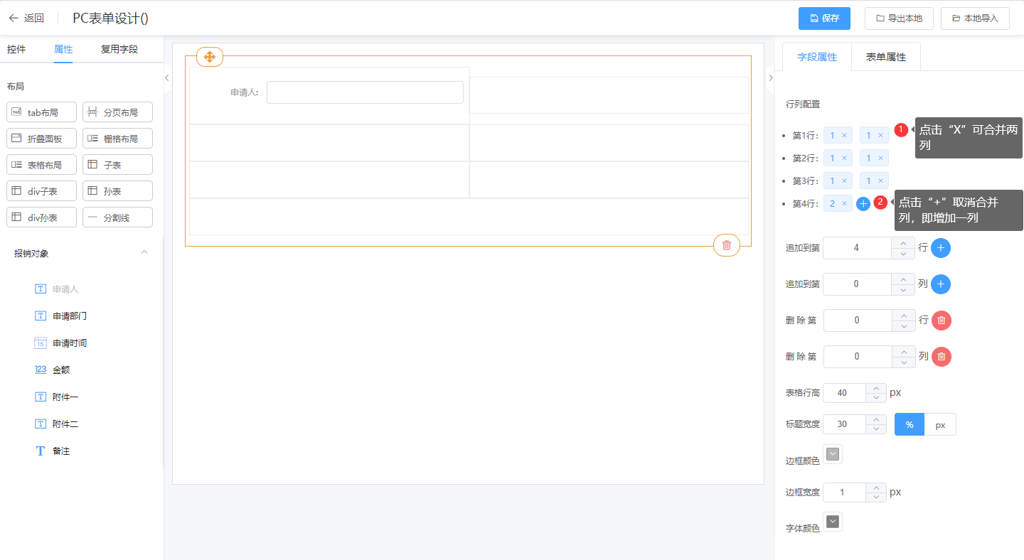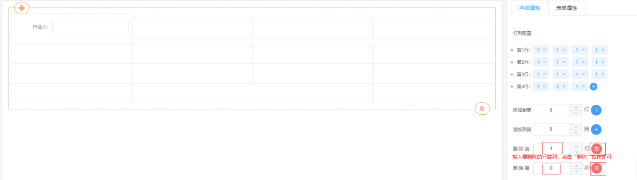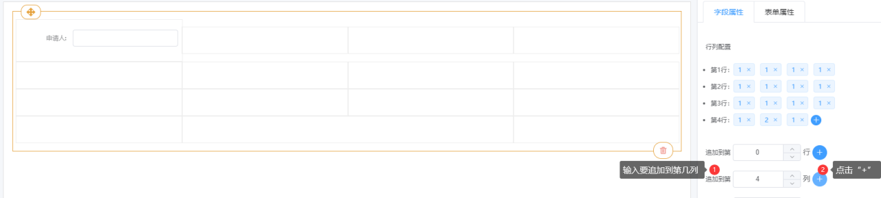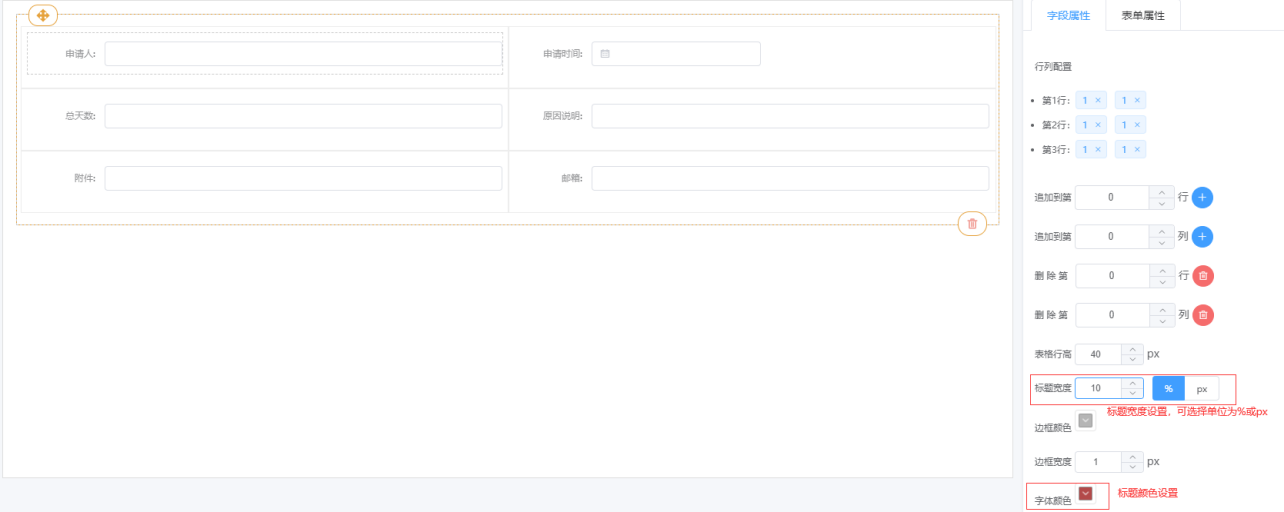 ③ 表格属性说明:行列配置