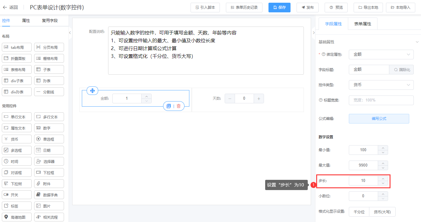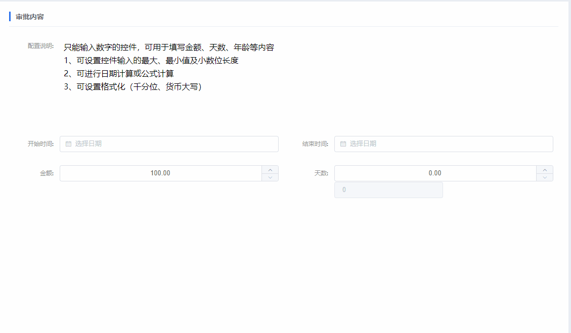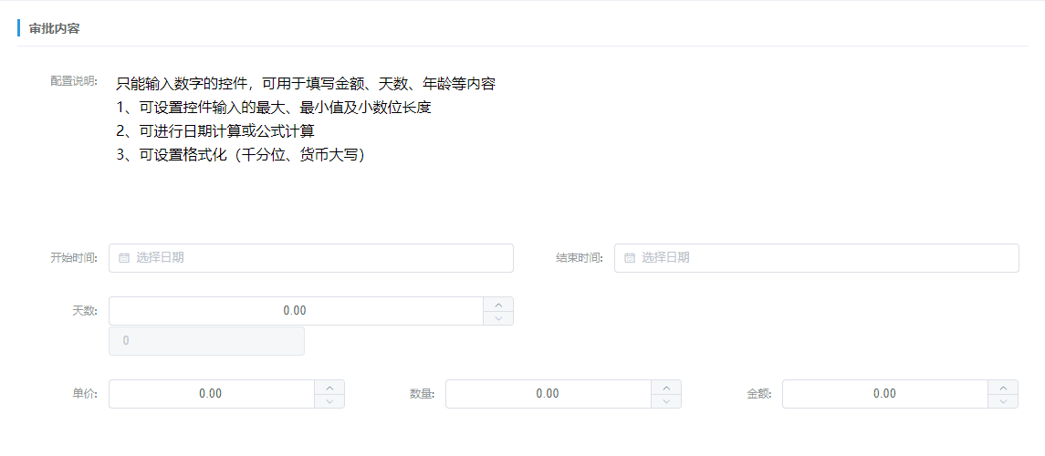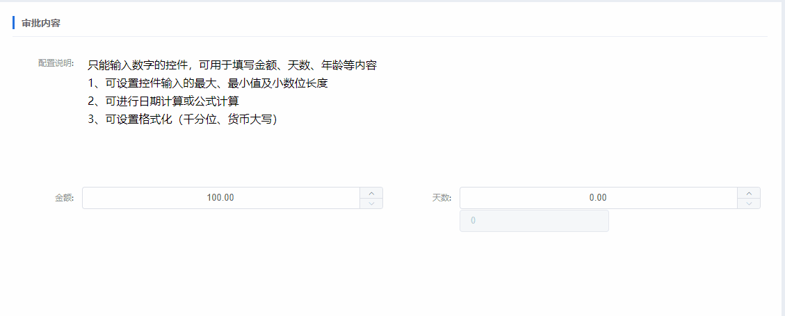 只能输入数字的控件,可用于填写金额、天数、年龄等内容