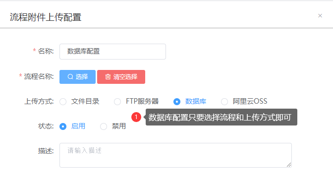 根据不同的流程需求可以选择不同的配置,一个配置可以选择多个流程,配置完后启动流程即可,流程启动中上传的附件会按配置的地址进行存储