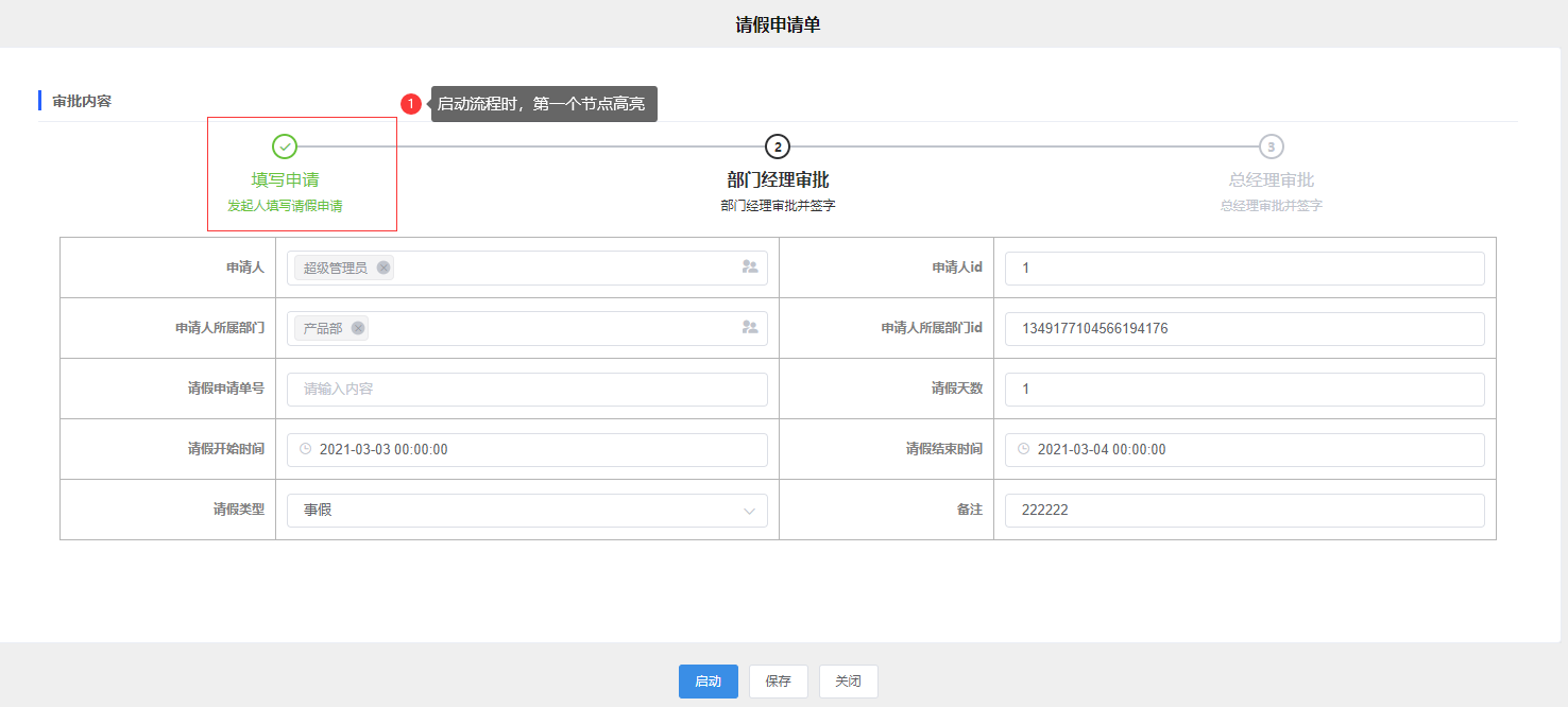 在填写申请过程中,可使用里程碑控件将申请的步骤或过程显示出来,高亮部分表示在当前环节