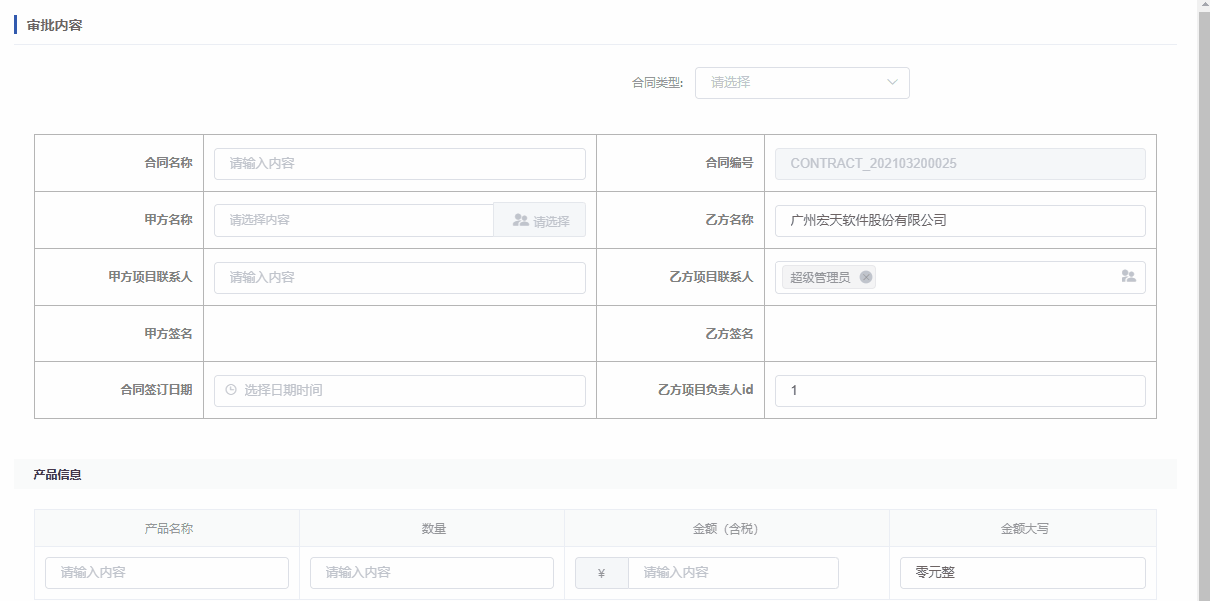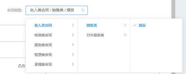 例:合同管理中选择合同类型;