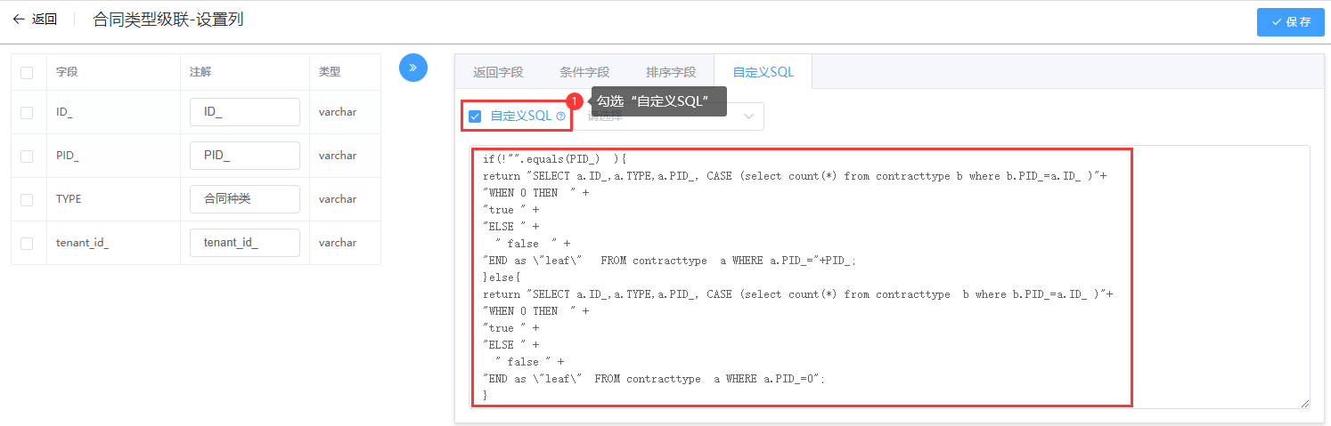 设置自定义SQL