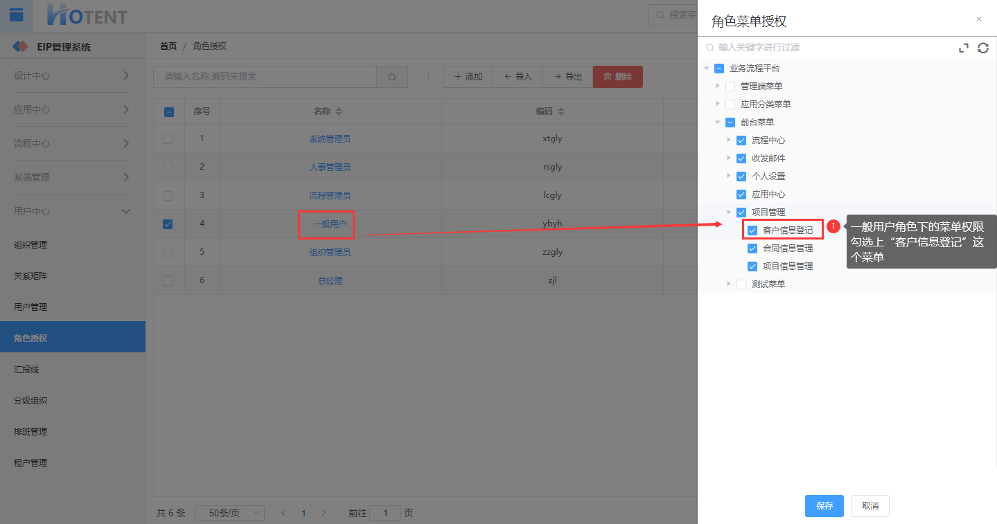 第三步:把这个菜单权限分配给角色“一般用户”;