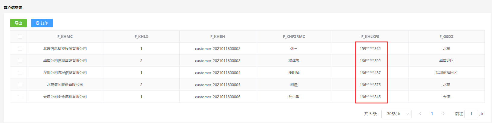 注:不在数据脱敏中的白名单的用户,对“客户联系方式”这个字段进行修改是不生效的