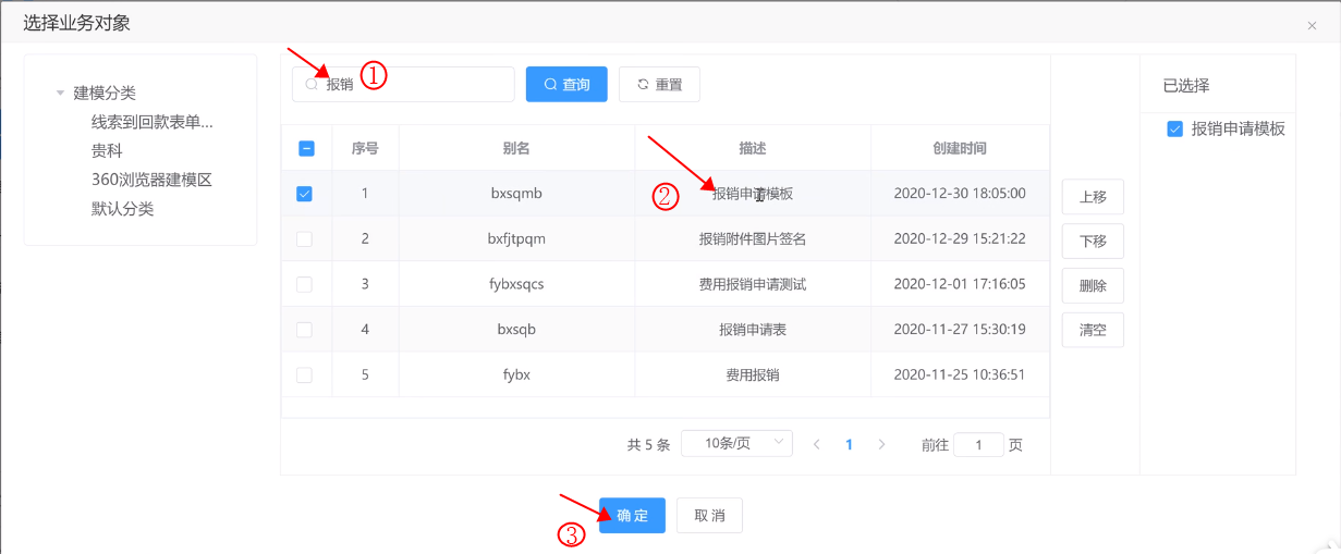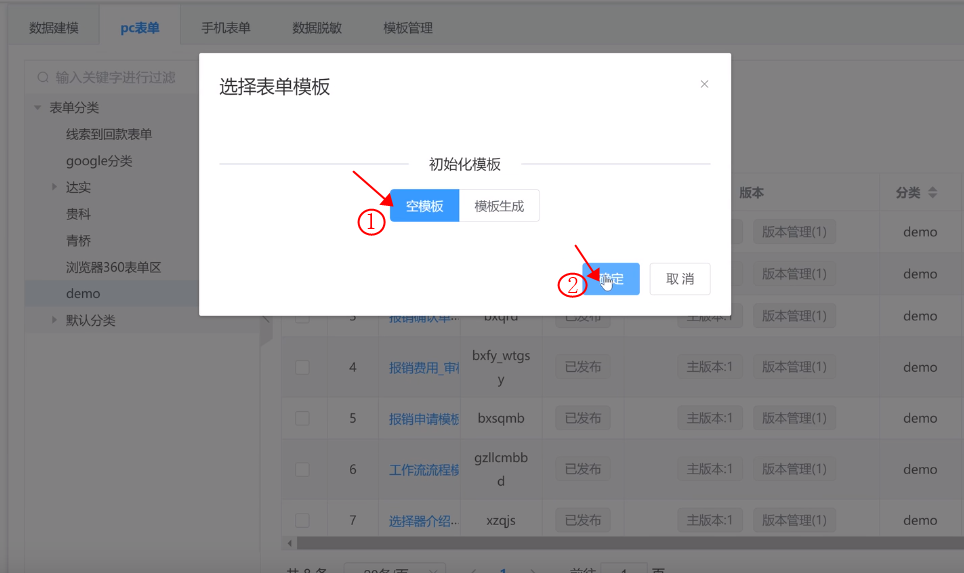 第一步:进入PC表单页面,点击添加,选择报销申请模板,点击确认;选择空模板,点确认;