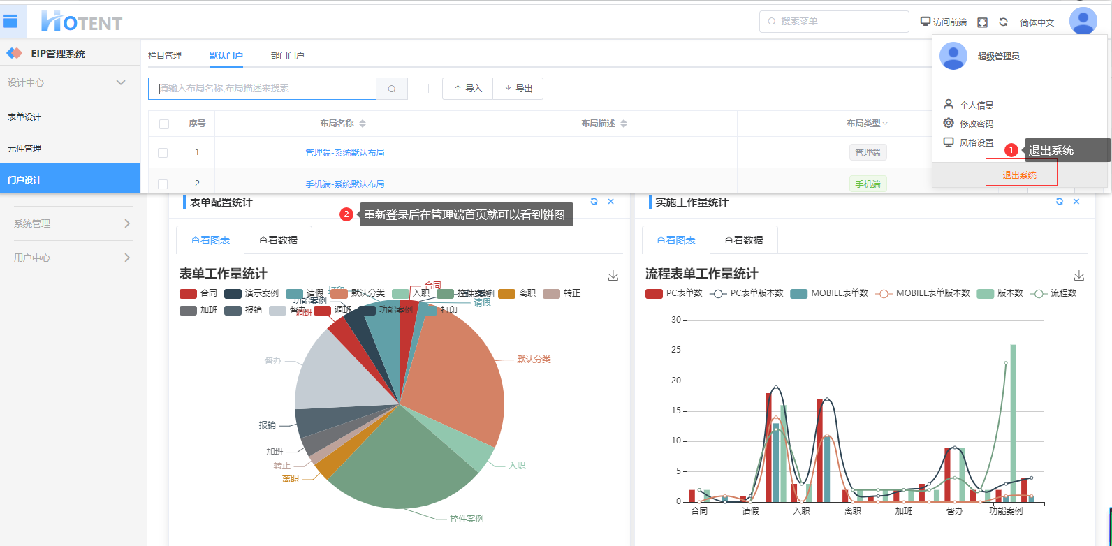 使用场景:用饼图的形式统计各分类下表单的数量,并将该饼图发布到管理端的首页上,在首页展示这个饼图