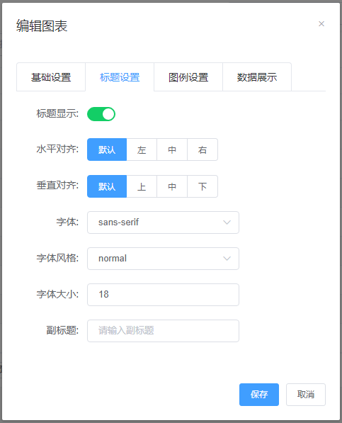 标题配置:即设置图表的标题及显示的位置、标题的字体风格、大小等属性如下图: