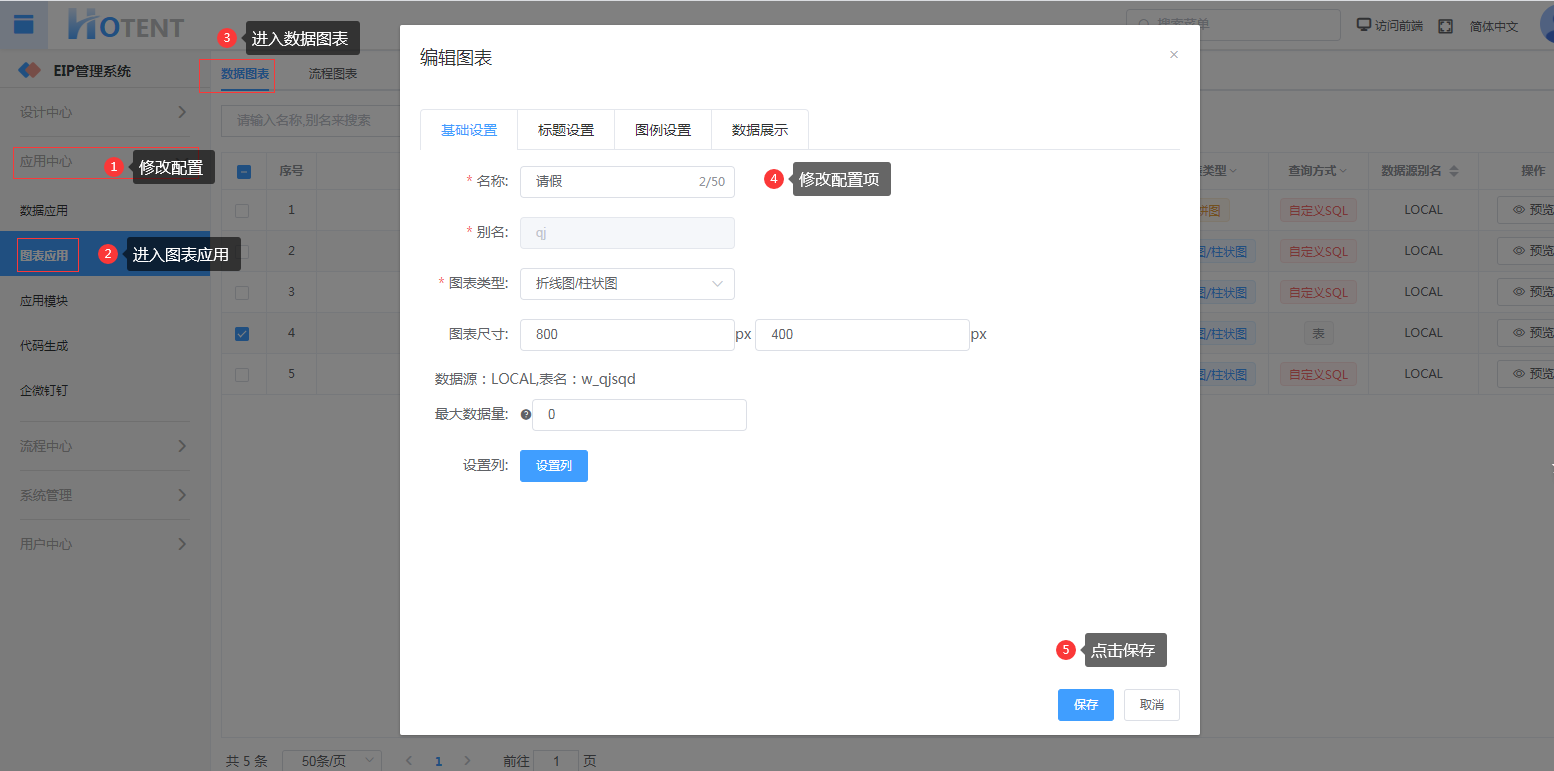 第一步:【应用中心】→【图表应用】→【数据图表】,点击要编辑的图表名称;