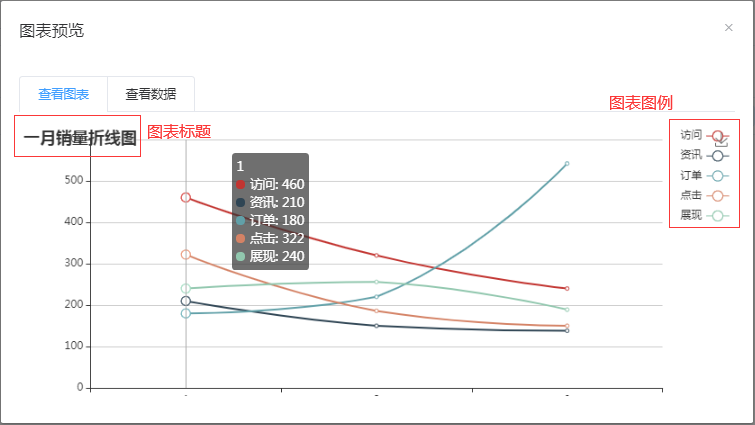 【应用中心】→【图表应用】→【数据图表】,选择要预览的图表,点击操作列下的“预览”按钮;