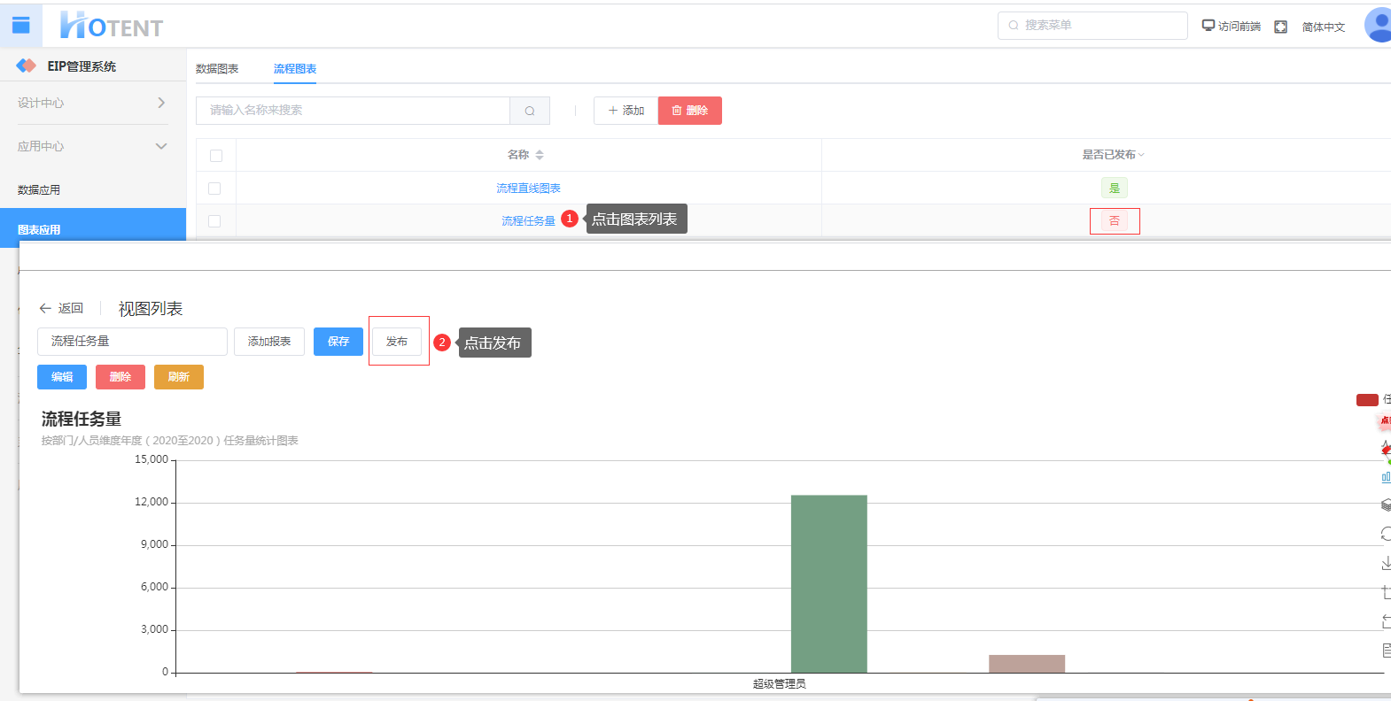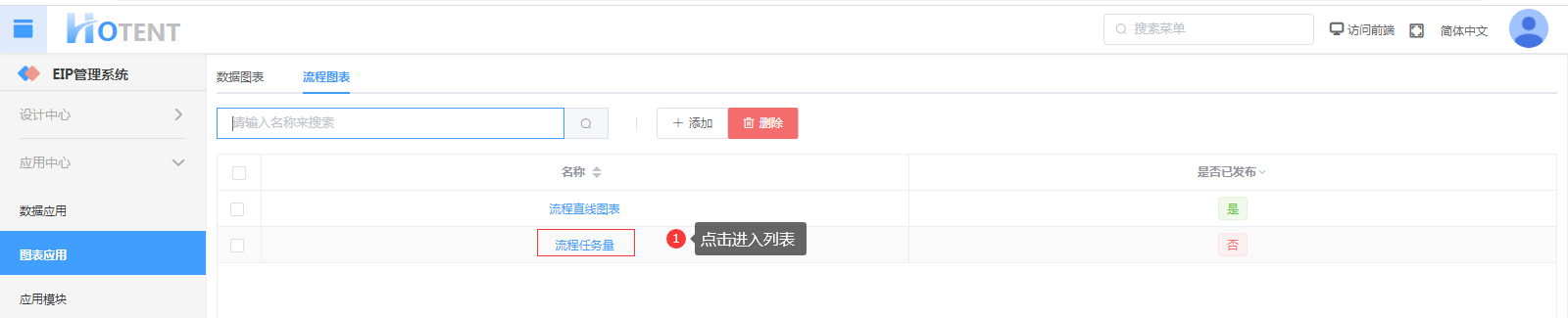 第一步:进入【图表应用】→【流程图表】点击添加按钮