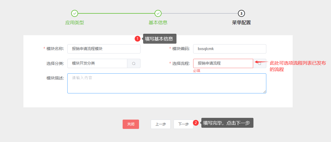• 流程模块的配置