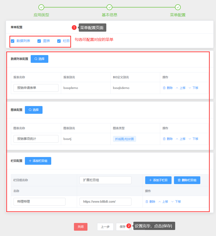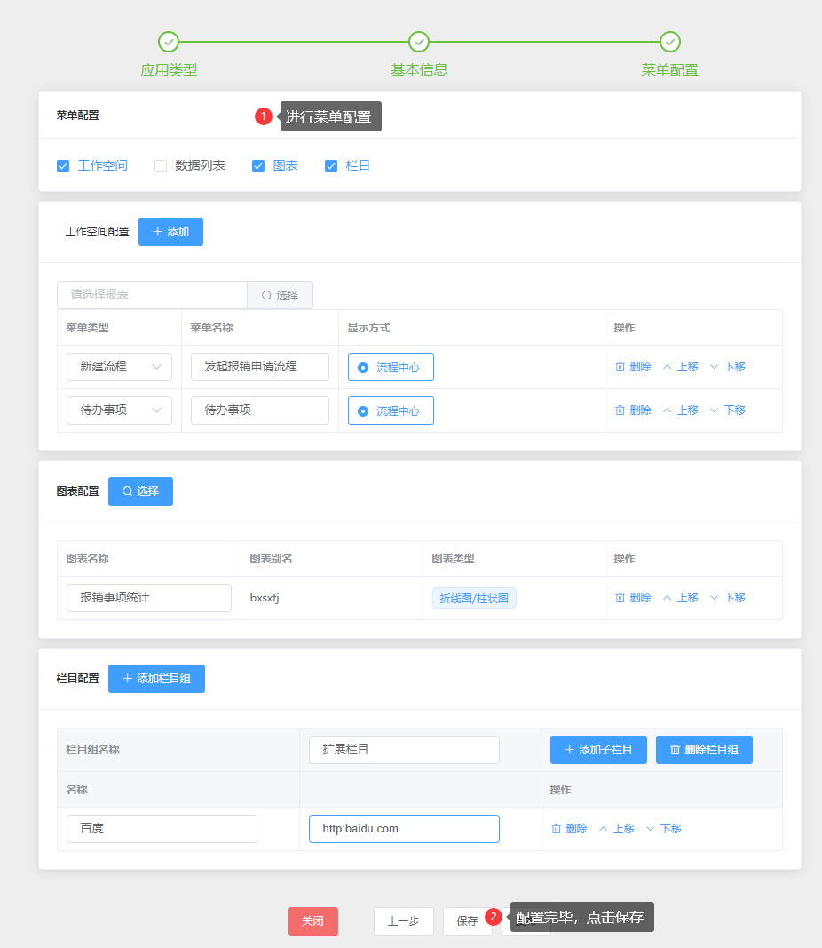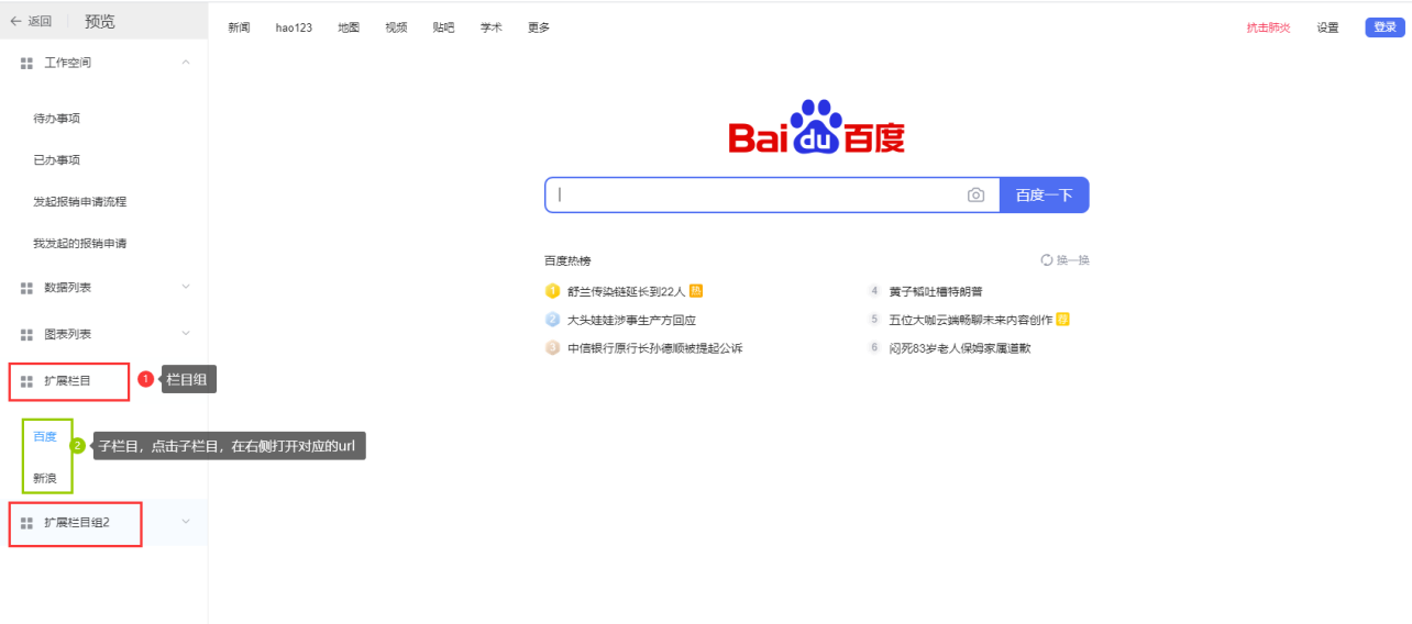 表单模块:即配置数据报表,支持配置表单对应的图标、扩展栏目;