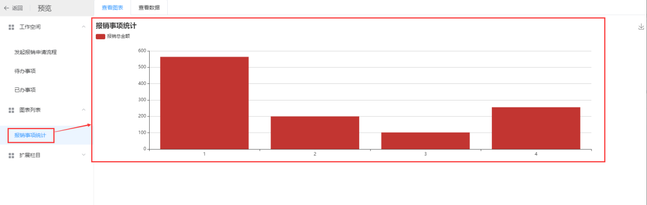 2、可以给该流程模块配置对应的数据报表、图表展示、扩展栏目;