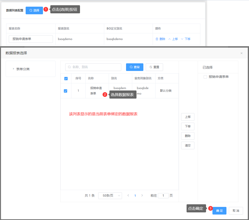 配置流程模块显示的表单列表;如下图: