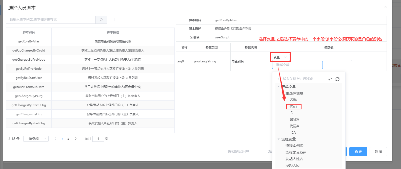 ②:变量配置---通过表单中选择的角色编码来获取审批人