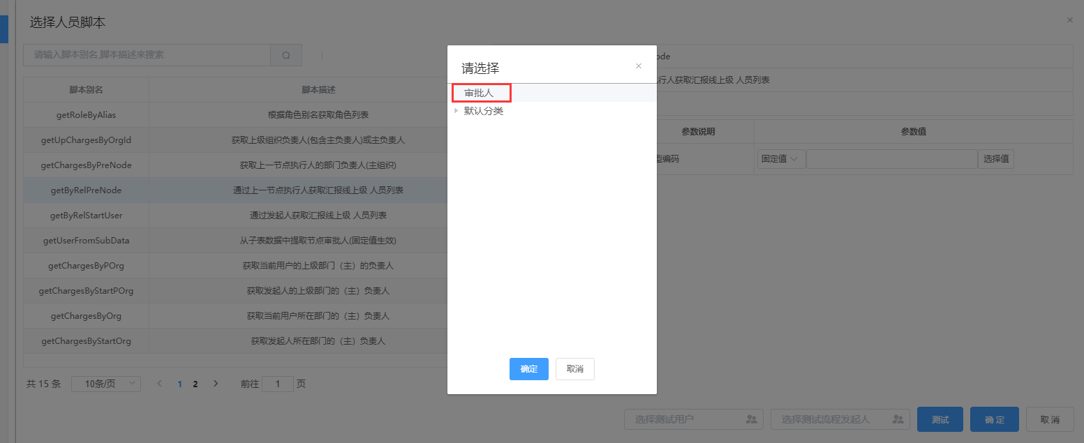 注:是否有效设置为“无效”时,在审批人员设置-人员脚本中将不能选择到该人员脚本