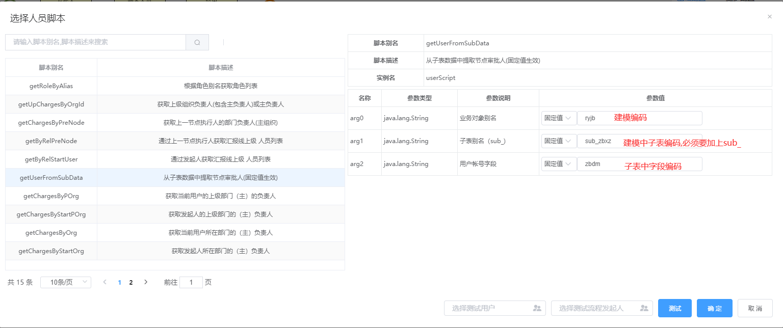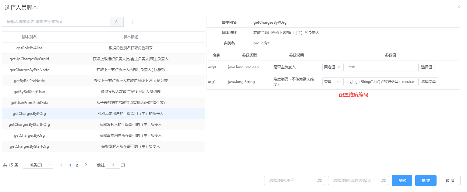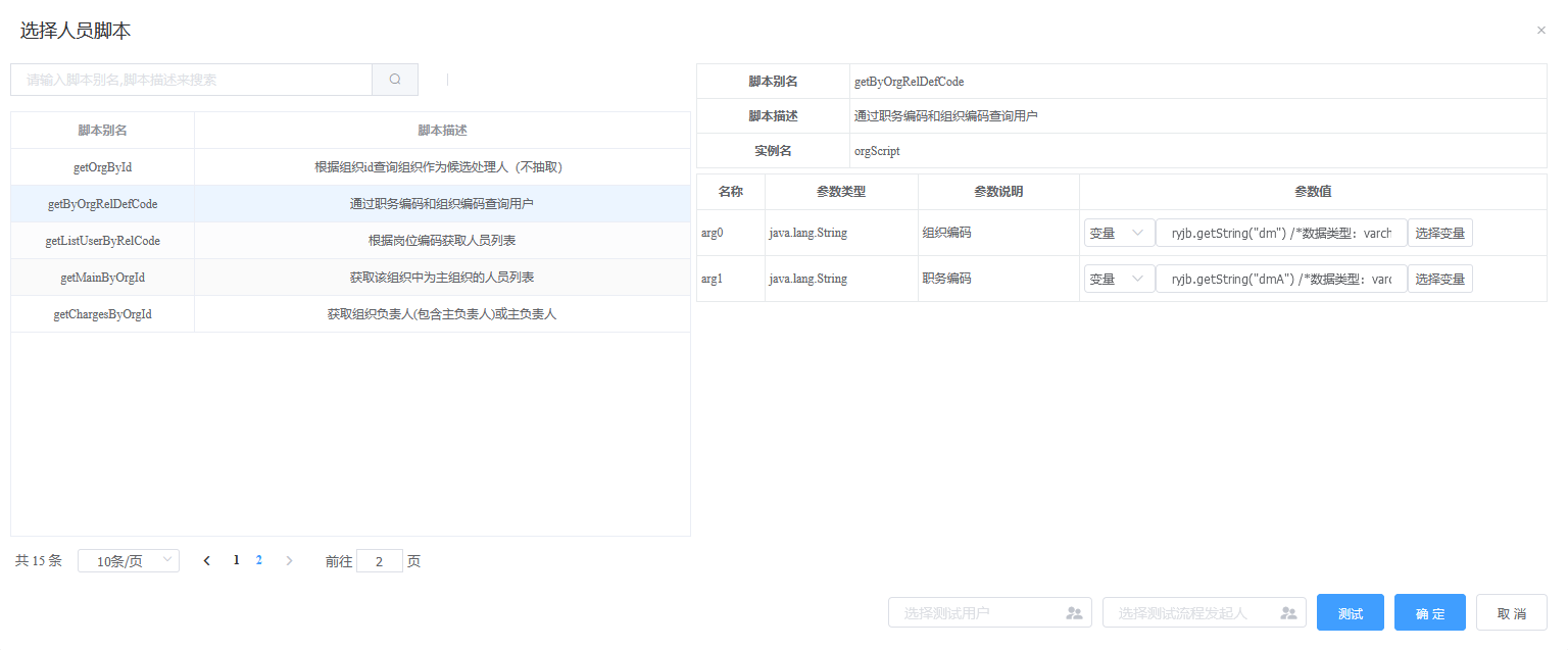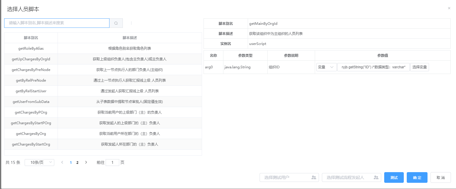 模块提供脚本测试功能:选择脚本,输入参数后,便可获取到对应的人员;
