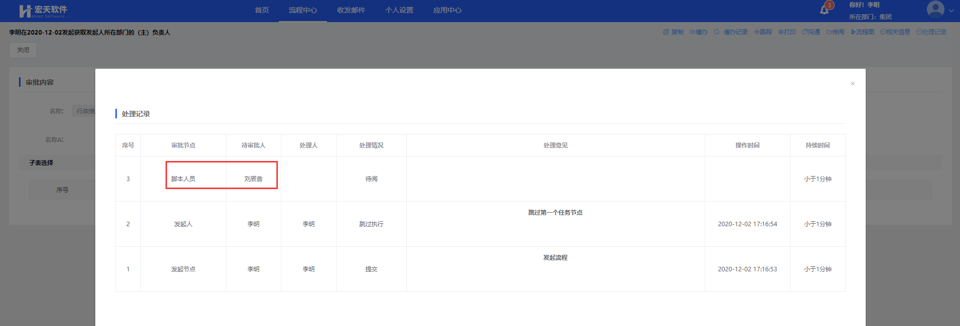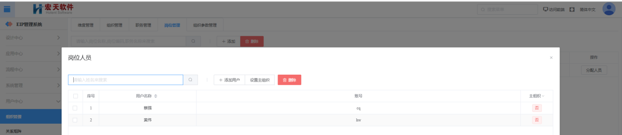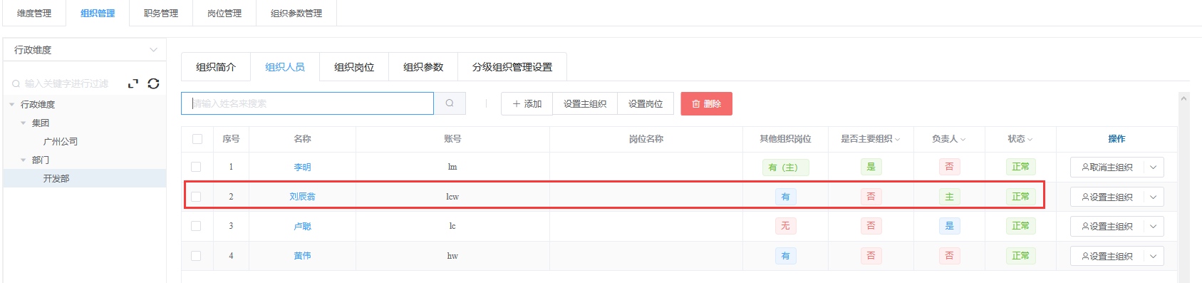 注:审批人必须有主组织,例如李明的主组织是开发部;