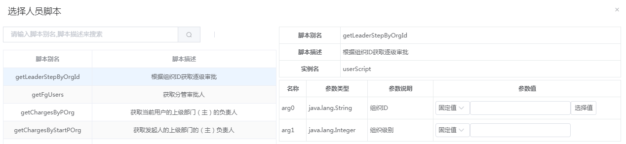 这个脚本可以从选择的组织id往上一直往上找组织主负责人审批人员,具体逻辑可以参考【 获取逐级审批】,不同之处,是获取逐级审批是从发起人主组织开始找的,这个脚本是从选定的组织开始找