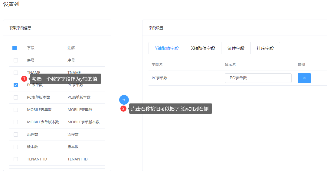 y轴取值字段