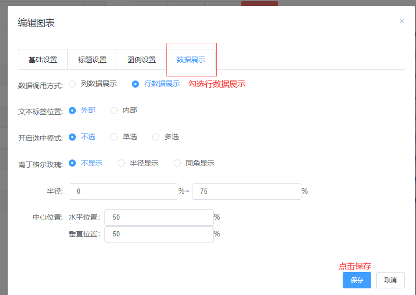 数据展示:设置数据的展示方式,如下图: