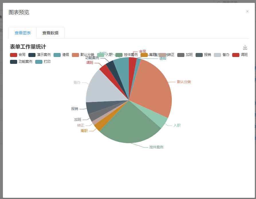 使用场景:用饼图的形式统计各分类下表单的数量,并将该饼图发布到管理端的首页上,在首页展示这个饼图