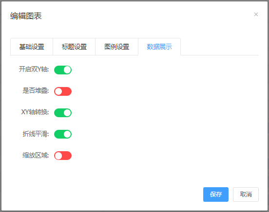 注:不同的图表类型有不同的数据展示设置,此图截图为折线图/柱状图的数据展示设置。