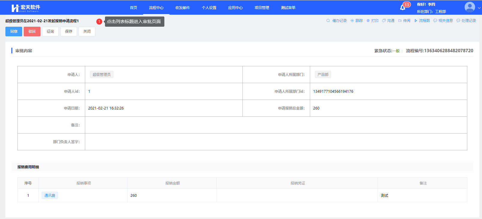 任务代理保存成功后,在所设置的时间段内,会在“李四”的待办列表中产生类型为“委托”的待办数据