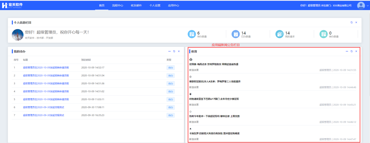 :手机端的新闻公告都展示在“信息台”栏目中,以页签的形式区分新闻的分类