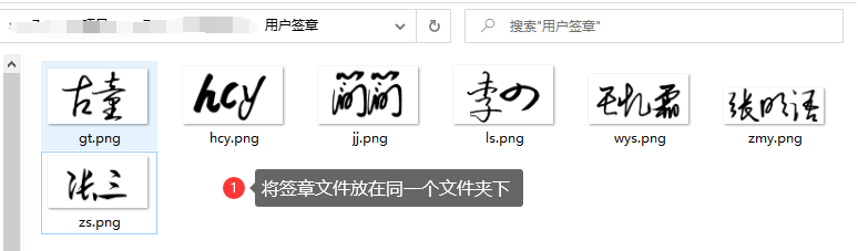 第一步:将签章图片整理好放到同一个文件夹下,文件命名规则:账号.png (如:zs.png)