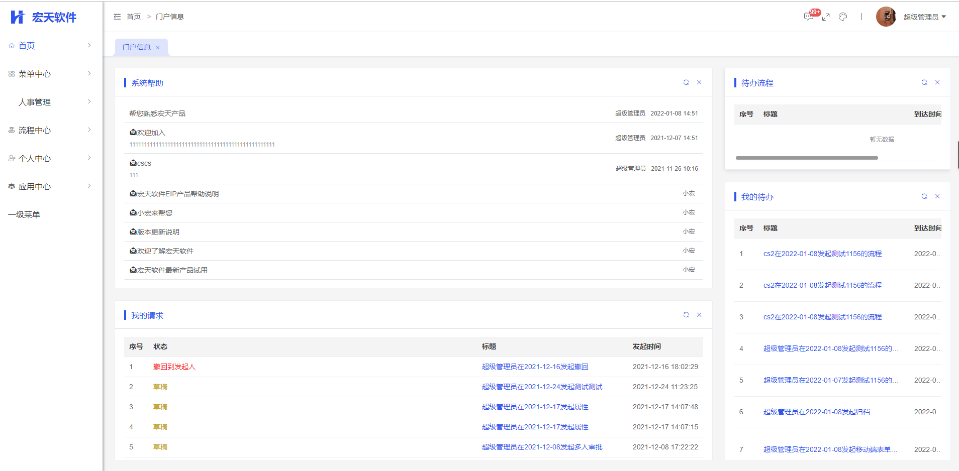应用端首页,即门户,可由门户管理员配置A 要展示的内容;