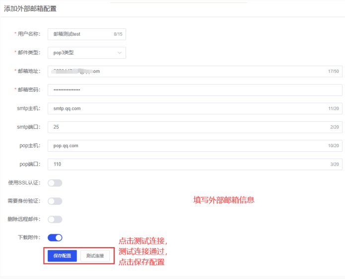 ① 添加外部邮件配置