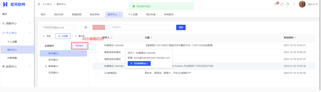 添加外部邮件配置,可直接在本系统中进行收发邮件的操作;