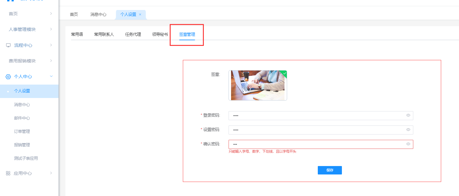 •签章管理:
