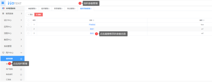 一级操作:【用户中心】→【组织管理】→【组织参数管理】→单击参数名称