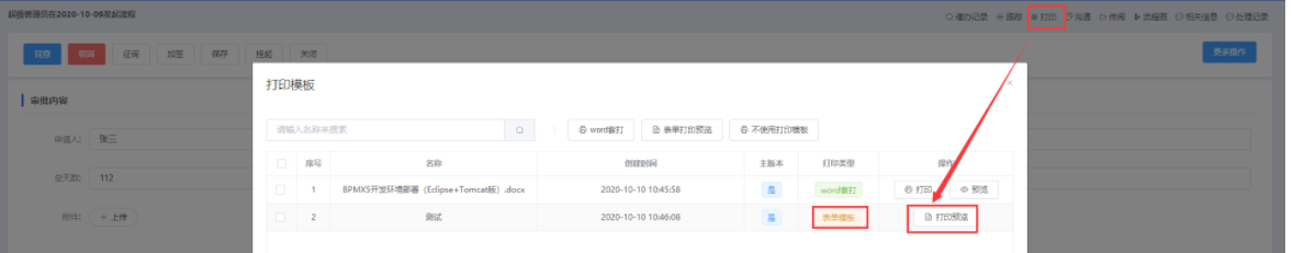 实现的效果(需要先在表单处添加打印模板)