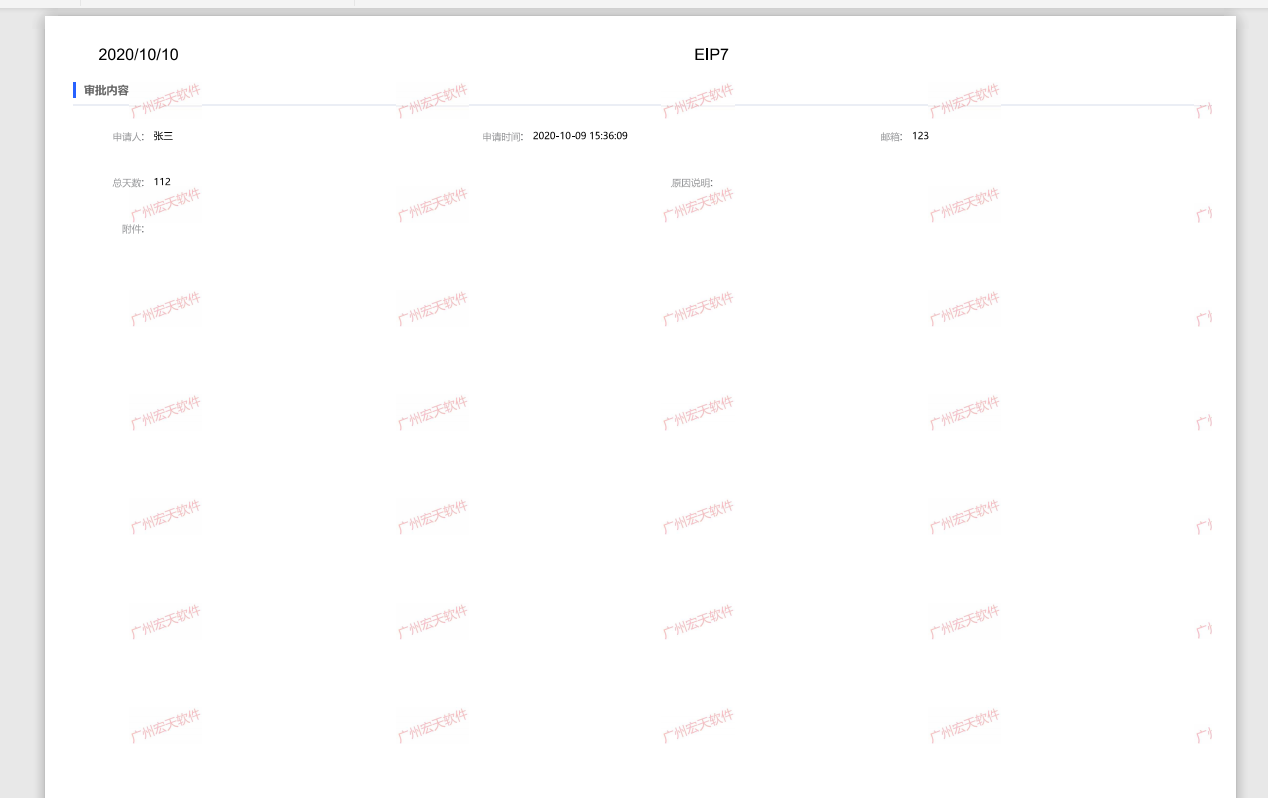 在流程操作的打印,可以过通添加水印的配置来实现打印流程中附加水印效果;