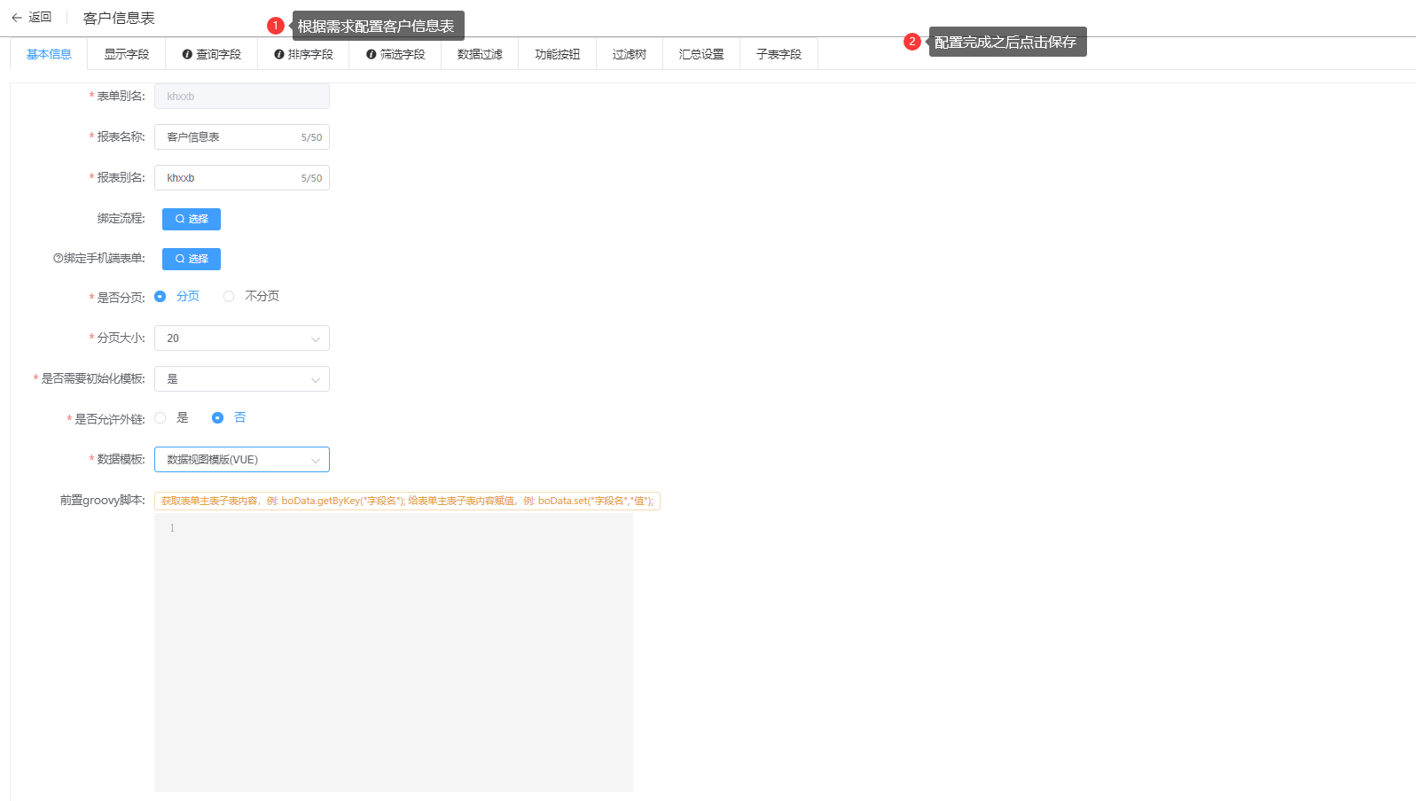 前提条件:已存在客户信息表;(客户信息表可通过建模添加)