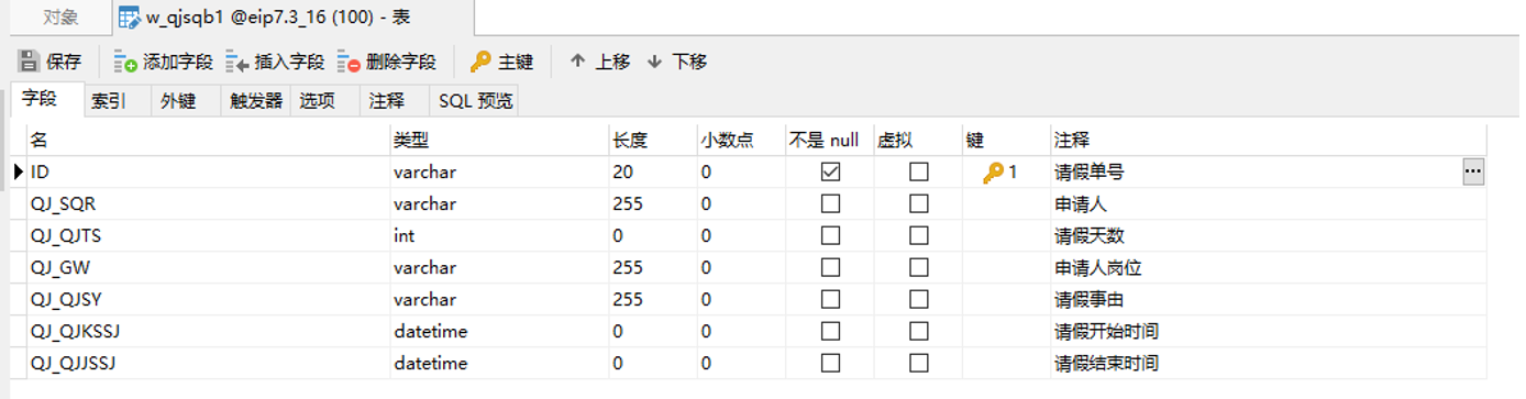 第一步:在数据库中设计好表结构