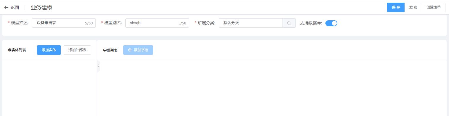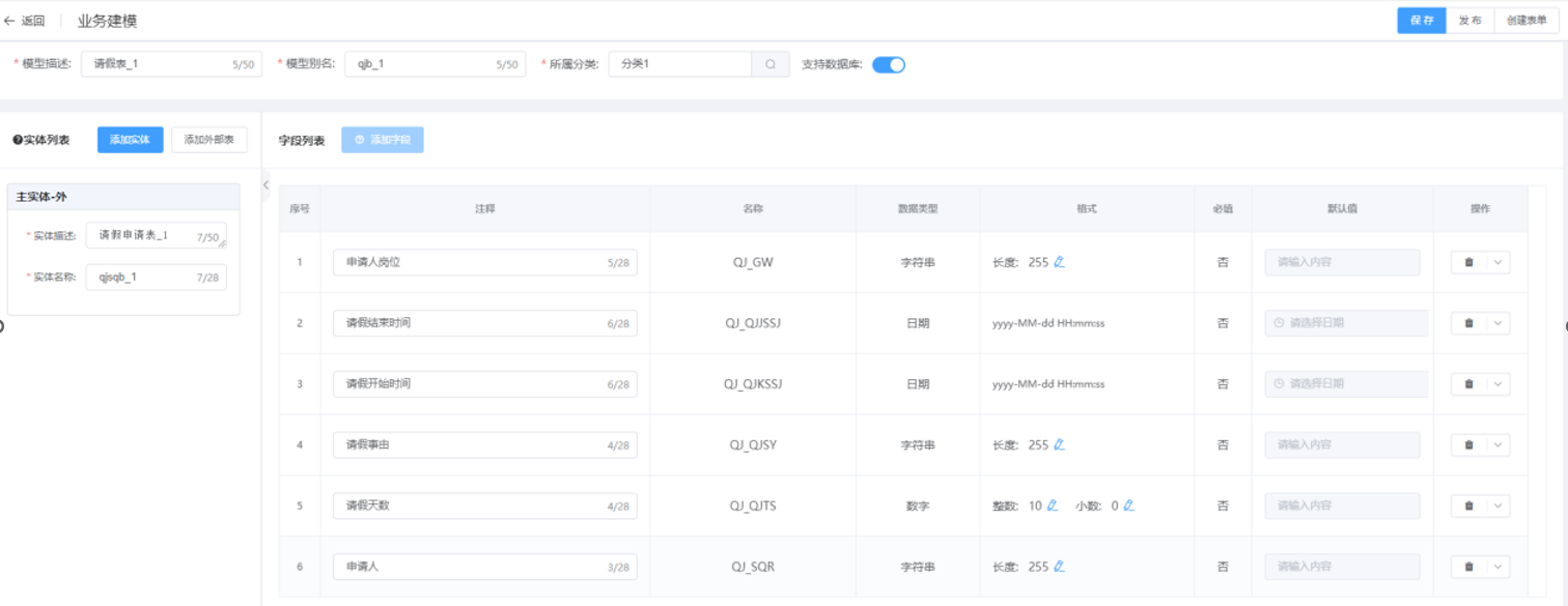 第六步:外部表的建模发布后,便可进行表单设计等操作;