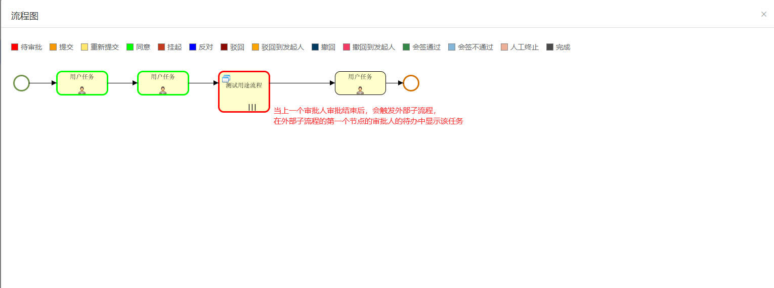 在外部子流程的第一个节点的审批人的待办中显示该任务: