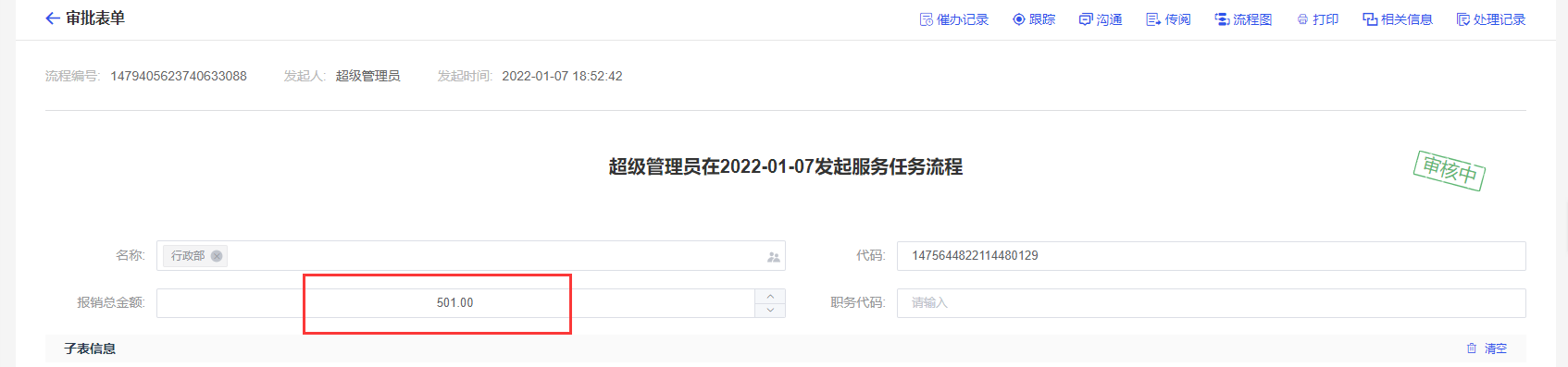 设置报销总金额为501,查看流程图效果: