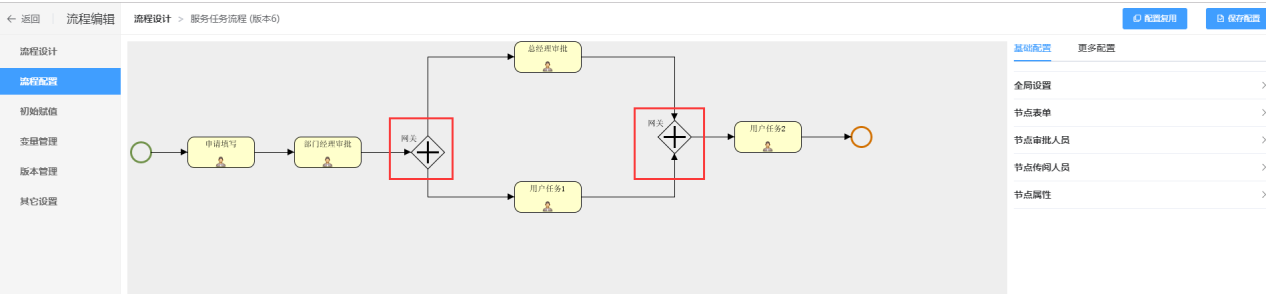 返回主流程页面,点击保存配置即可启动该流程,效果图如下所示: